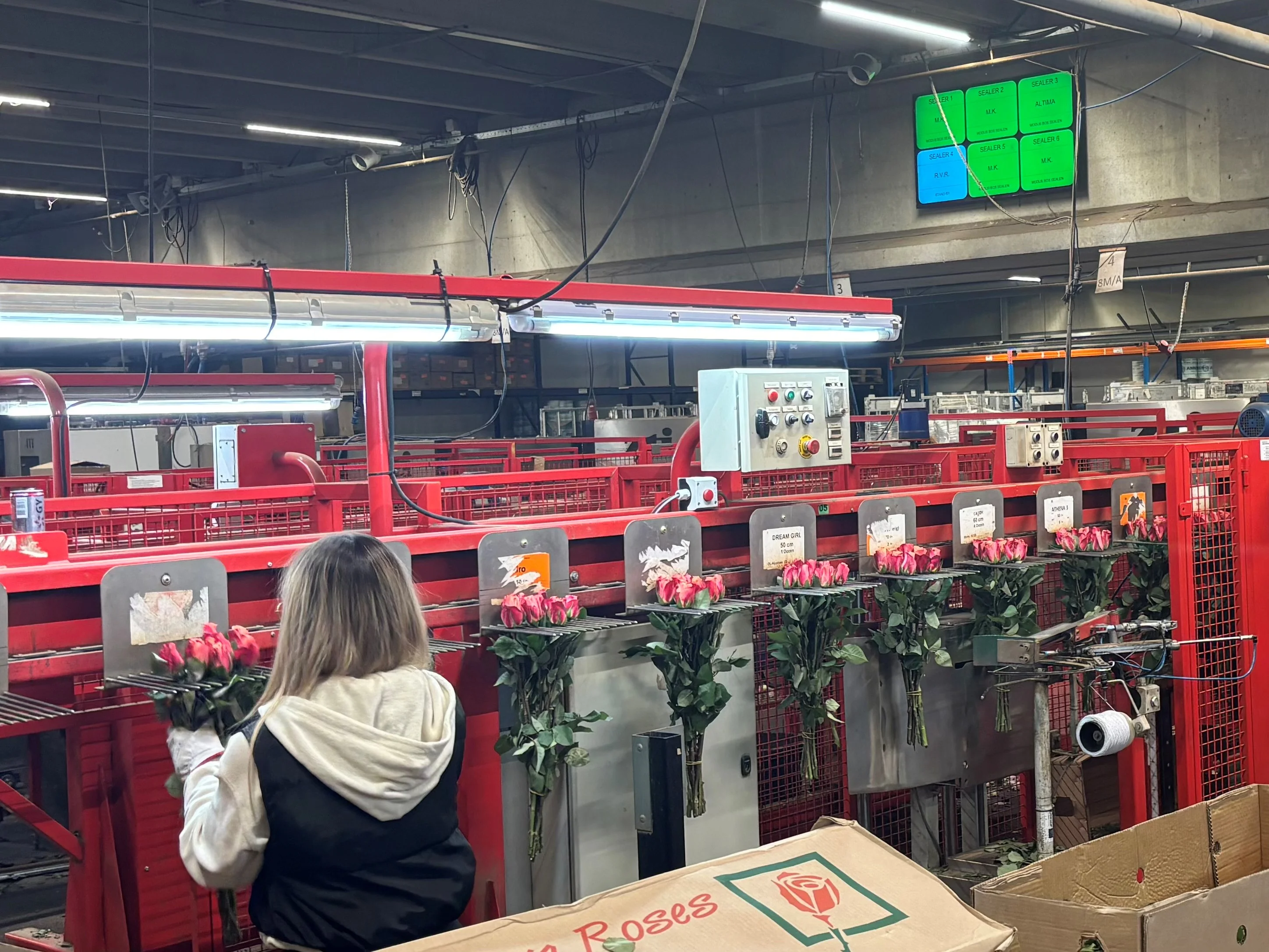 Zodra de rozen uit Kenia per geconditioneerde vlucht in Nederland aankomen, worden ze ontvangen door onze vrachtagent en direct naar onze locatie in Aalsmeer getransporteerd. Een zorgvuldig gepland en efficiënt productieproces zorgt voor de dagelijkse verwerking van de rozen. Deze worden vanuit de transportdozen op veilingfusten verpakt, zodat ze de volgende dag klaar zijn voor verkoop.