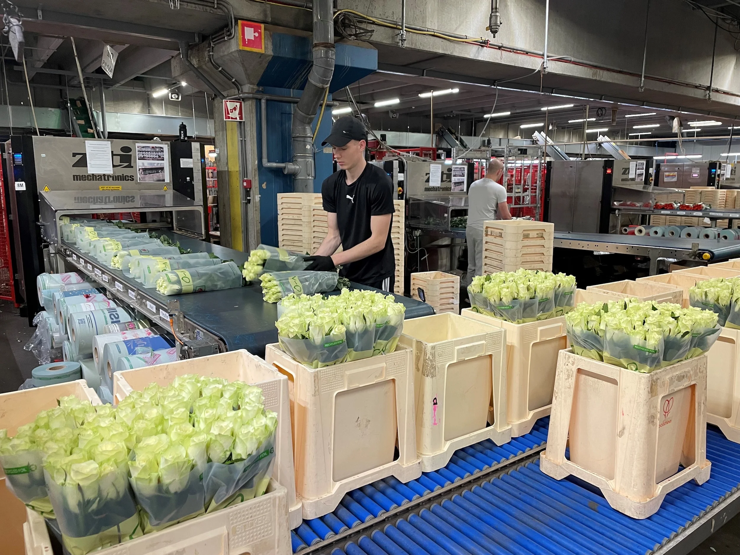 Zodra de rozen uit Kenia per geconditioneerde vlucht in Nederland aankomen, worden ze ontvangen door onze vrachtagent en direct naar onze locatie in Aalsmeer getransporteerd. Een zorgvuldig gepland en efficiënt productieproces zorgt voor de dagelijkse verwerking van de rozen. Deze worden vanuit de transportdozen op veilingfusten verpakt, zodat ze de volgende dag klaar zijn voor verkoop.